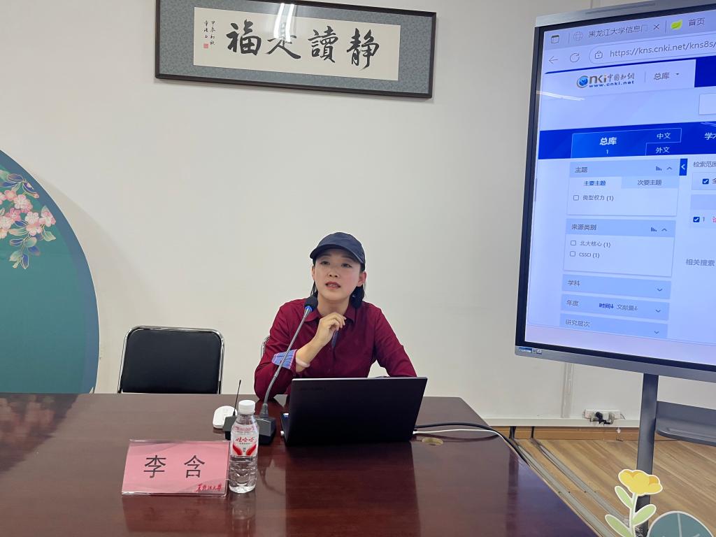 李含围绕图书馆概况、常用数字资源使用方法、学科服务三个方面展开培训。在图书馆概况部分,重点介绍了我校图书馆历史沿革、馆藏规模等以及图书借阅方式等情况。让教师对图书馆有了全面的了解。在常用数字资源部分,分类介绍了图书馆中外文数据库资源,并演示了网页端与移动端的资源访问方式。在学科服务部分,针对文献传递与馆际互借服务操作流程进行重点介绍,随后,在查收查引方面以中国知网、Web of Science、中国社会科学引文索引(CSSCI)为例,就如何进行文献来源及被引情况检索等进行了详细地现场演示,针对报奖、报科研项目等关键环节如何利用文献检索提高命中率进行了指导。为教师们更好地开展教学与科研工作提供全面细致的服务。