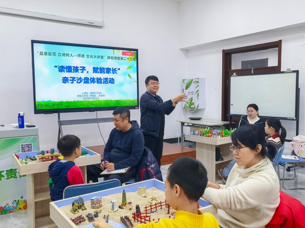 此次举办的第三期亲子沙盘体验活动,既赋能教职工成为更懂孩子的陪伴者,也让师德修养在家庭场景中得到延伸与升华,真正实现了“师德建设”与“家庭幸福”的双向赋能,为构建和谐校园、幸福家庭注入了温暖力量。之后人事处(教师工作部)、学生工作部心理健康教育中心将会陆续推出形式多样的亲子工作坊,更好地为教职工提供心理服务。(人事处(教师工作部)、学生工作部(学生处、武装部)供稿)