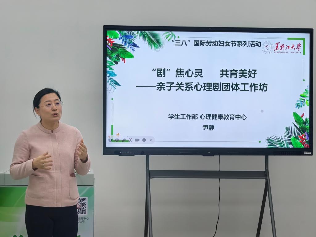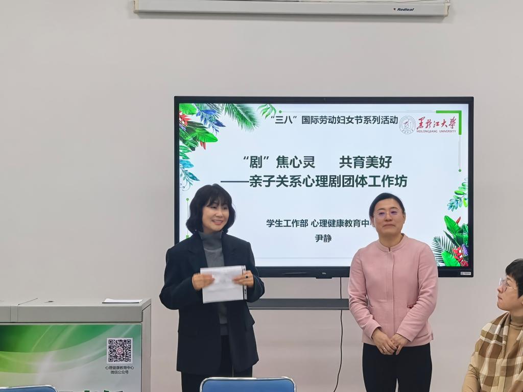 为迎接“三八”国际劳动妇女节,切实关爱教职工,助力构建和谐亲子关系,3月5日,人事处(教师工作部)、学生工作部(学生处、武装部)、工会、妇女联合会联合举办“‘剧’焦心灵 共育美好”亲子关系心理剧团体工作坊。工作坊由黑龙江大学心理健康教育中心专职心理教师尹静教授带领、吕慧杰老师协同带领,校妇联主席、校工会兼职副主席、创新创业教育学院党委书记綦明霞主持,20位教师参与。