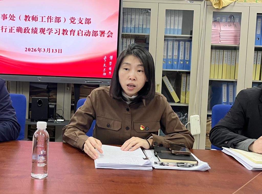 下一步,人事处(教师工作部)党支部将严格按照此次会议部署,认真落实“四个深入学习”要求,一体推进学查改,坚持将学习教育与学校2026年工作部署会和全面从严治党工作会议精神、深化能力作风建设等工作相结合,切实把学习教育成果转化为履职尽责、服务师生、推动发展的实际行动,彰显支部战斗堡垒作用和党员先锋模范作用。