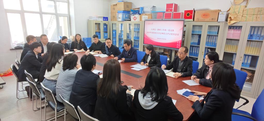 3月25日,机关党委人事处(教师工作部)党支部在主楼A座320室召开2025年度组织生活会并开展民主评议党员。会议以“深入学习贯彻习近平新时代中国特色社会主义思想,全面贯彻落实党的二十届四中全会精神,以打攻坚战、持久战的决心和恒心,锲而不舍落实中央八项规定精神,推进作风建设常态化长效化,以优良作风凝心聚力、真抓实干,奋力开创中国式现代化建设新局面”为主题。学校党委副书记、副校长三朗扎西,党支部全体党员参会。会议由机关党委人事处(教师工作部)党支部书记张晶平主持。机关党委组织部党支部任宝川列席指导。