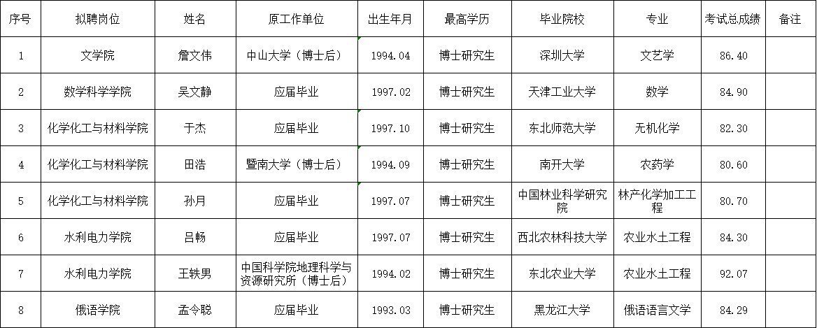 根据《关于印发〈黑龙江省事业单位公开招聘工作人员实施细则〉的通知》(黑人社发〔2014〕63号)《关于全面下放省直事业单位公开招聘管理权限的通知》(黑人社发〔2015〕66号)和《黑龙江大学2026年公开招聘博士教师公告》等相关规定,现将2026年第一批拟聘用人员予以公示,公示期7个工作日。如有异议,请在公示期内实名反映。反映情况和问题必须实事求是,应签署或告知真实姓名、工作单位和联系方式;对线索不清的匿名信和匿名电话,不予受理;逾期反映情况不予受理。