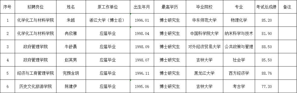 根据《关于印发〈黑龙江省事业单位公开招聘工作人员实施细则〉的通知》(黑人社发〔2014〕63号)《关于全面下放省直事业单位公开招聘管理权限的通知》(黑人社发〔2015〕66号)和《黑龙江大学2026年公开招聘博士教师公告》等相关规定,现将2026年第二批拟聘用人员予以公示,公示期7个工作日。如有异议,请在公示期内实名反映。反映情况和问题必须实事求是,应签署或告知真实姓名、工作单位和联系方式;对线索不清的匿名信和匿名电话,不予受理;逾期反映情况不予受理。