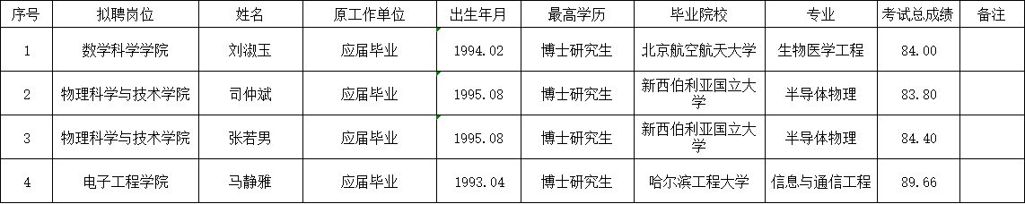 根据《关于印发〈黑龙江省事业单位公开招聘工作人员实施细则〉的通知》(黑人社发〔2014〕63号)《关于全面下放省直事业单位公开招聘管理权限的通知》(黑人社发〔2015〕66号)和《黑龙江大学2025年公开招聘博士教师公告》相关规定,现将2025年第十一批拟聘用人员予以公示,公示期7个工作日。如有异议,请在公示期内实名反映。反映情况和问题必须实事求是,应签署或告知真实姓名、工作单位和联系方式;对线索不清的匿名信和匿名电话,不予受理;逾期反映情况不予受理。